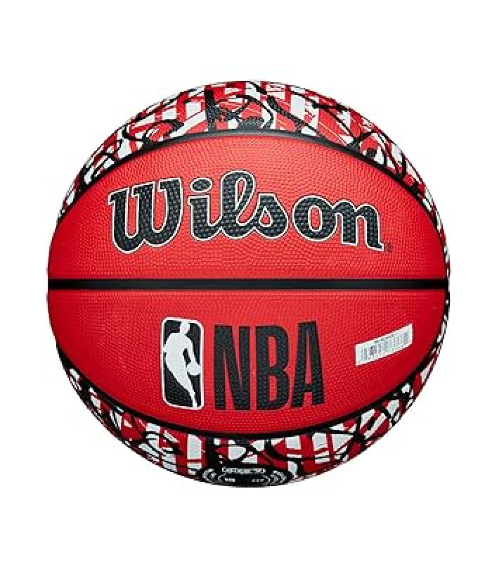 Restez fidèle au ballon de basket Wilson NBA Team Graffiti. La housse arbore des graphismes artistiques des couleurs principales et secondaires de votre équipe sur ses panneaux, avec le logo des Raptors bien visible sur la couverture. Conçue pour affronter tous les terrains, cette housse Performance offre une adhérence durable sur les surfaces rugueuses.