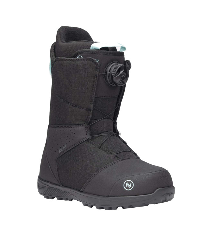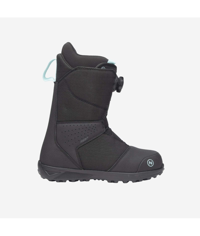 La partie supérieure de la chaussure se ferme rapidement et avec précision grâce à une seule molette BOA® H4 située sur la languette. Nous avons utilisé les lacets textiles TX3 de BOA® pour réduire encore le poids, augmenter la durabilité et donner une sensation plus naturelle à la fermeture. À l'intérieur, notre chausson thermoformable Bronze Level Liner avec semelle Single Density Footbed vous maintiendra bien au chaud. La durabilité 1:1 signifie que nous avons utilisé une coque, un chausson et une semelle spécifiques pour chaque taille et demi-taille. Confortable ? Très confortable. Comme le reste de notre gamme, la Sierra-W utilise une forme asymétrique sur la partie extérieure, ce qui signifie que la chaussure s'adapte parfaitement aux hibacks de nos fixations et garantit un transfert de puissance optimal. Cela s'applique aussi bien aux pistes d'atterrissage qu'aux pistes de glisse ou aux zones de poudreuse de la station. La Sierra-W est un excellent rapport qualité-prix et permet d'accéder à la technologie et aux sensations de la chaussure Nidecker sans se ruiner.